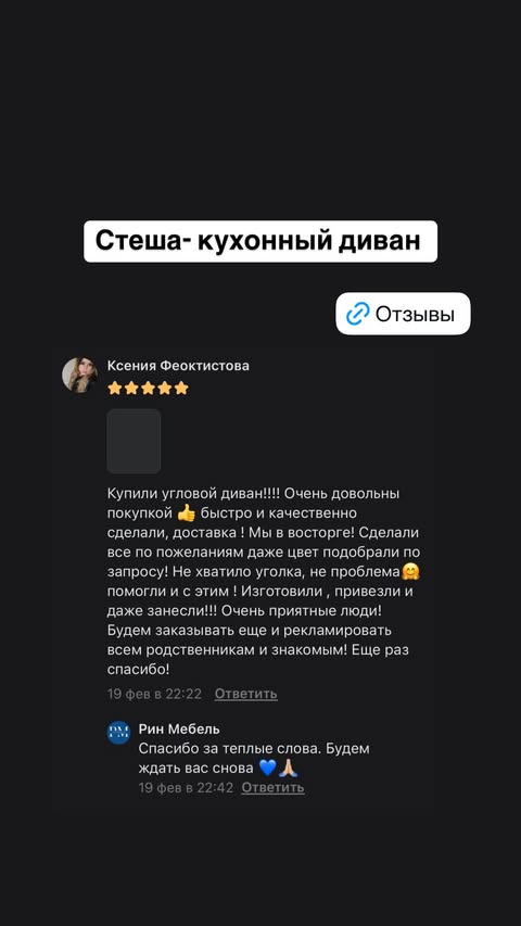 Мебель с доставкой по всей Башкирии Кухни, шкафы, гостиные – привезём в любой город и село РБ Позвонить Отзывы клиентов Рин-Мебель в соц-сетях Вконтакте *Instagram Telegram